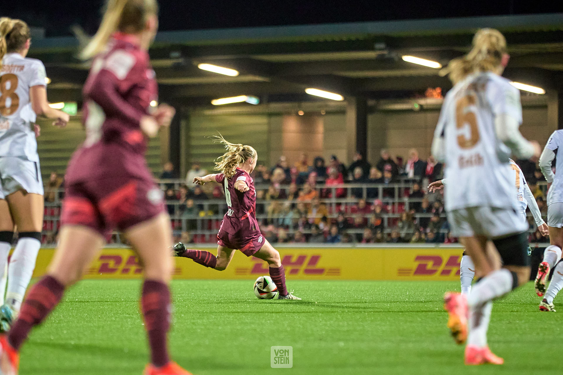 Lou-Ann Joly (6, RB Leipzig), Aktion, mit Ball, Schuss, Fans im Hintergrund