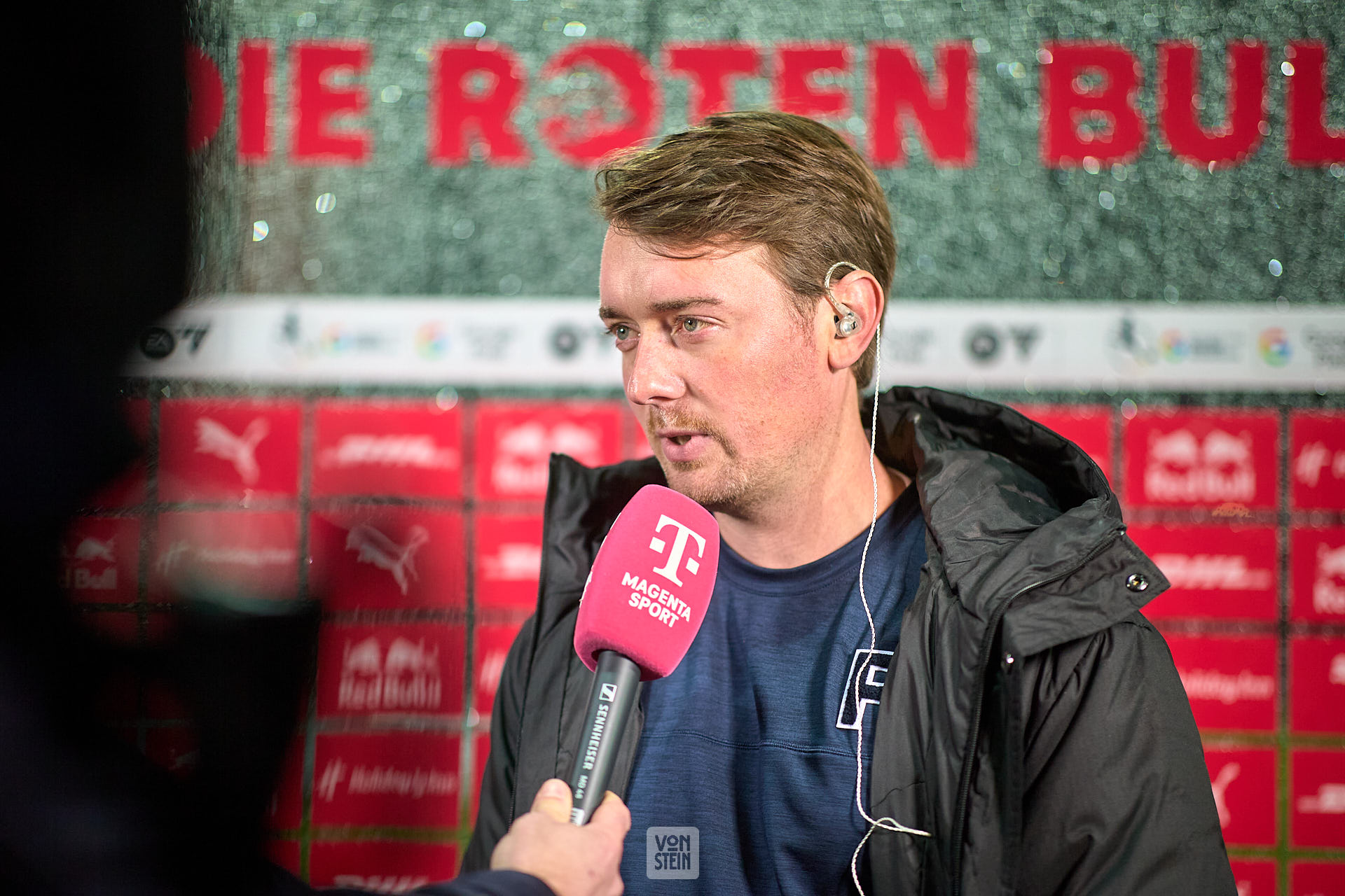Jonas Stephan (Cheftrainer, RB Leipzig), Beim Interview, vorm Spiel, Magenta TV