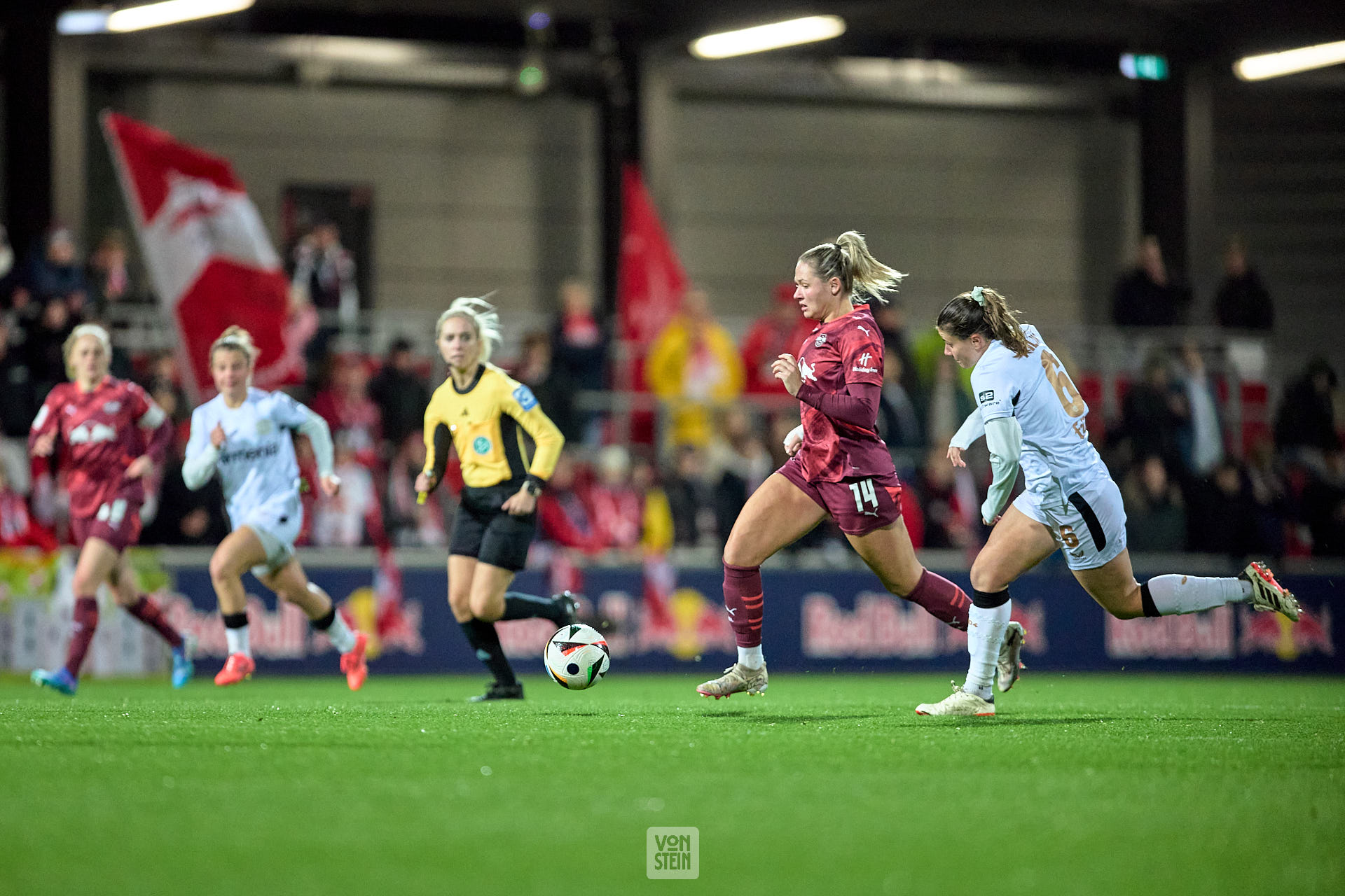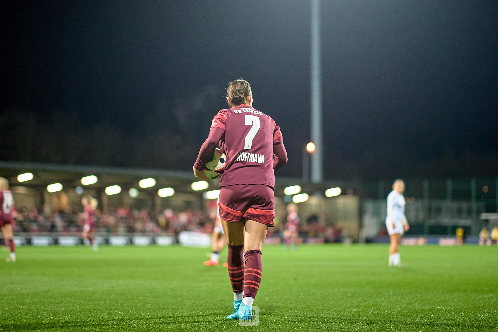 Giovanna Hoffmann (7, RB Leipzig), Rückansicht, mit Ball unterm Arm