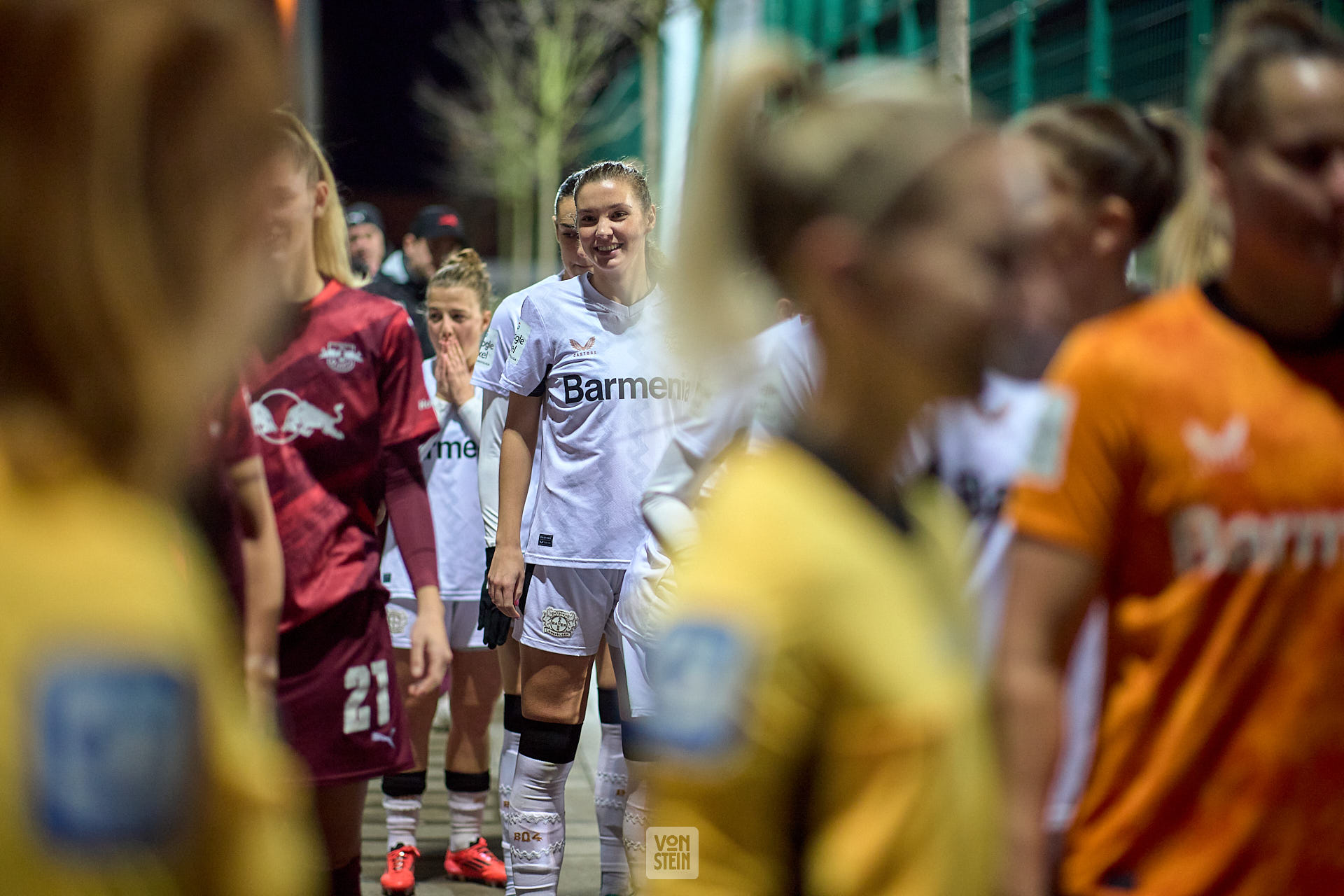 Karolina Lea Vilhjalmsdottir (18, Bayer Leverkusen), vorm Einlaufen, lächelt