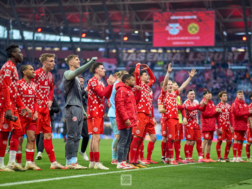 Mannschaft, FSV Mainz 05, nach Abpfiff, jubeln vor der Gästekurve