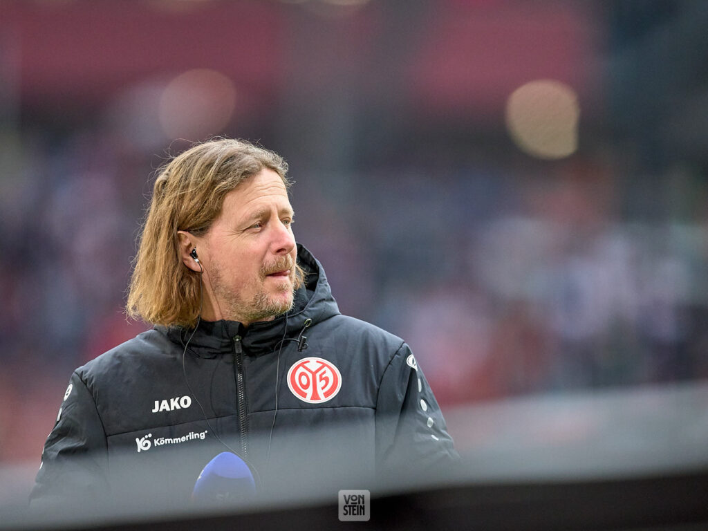 Bo Henriksen (Cheftrainer, FSV Mainz 05), Portrait, beim Interview, vorm Spiel