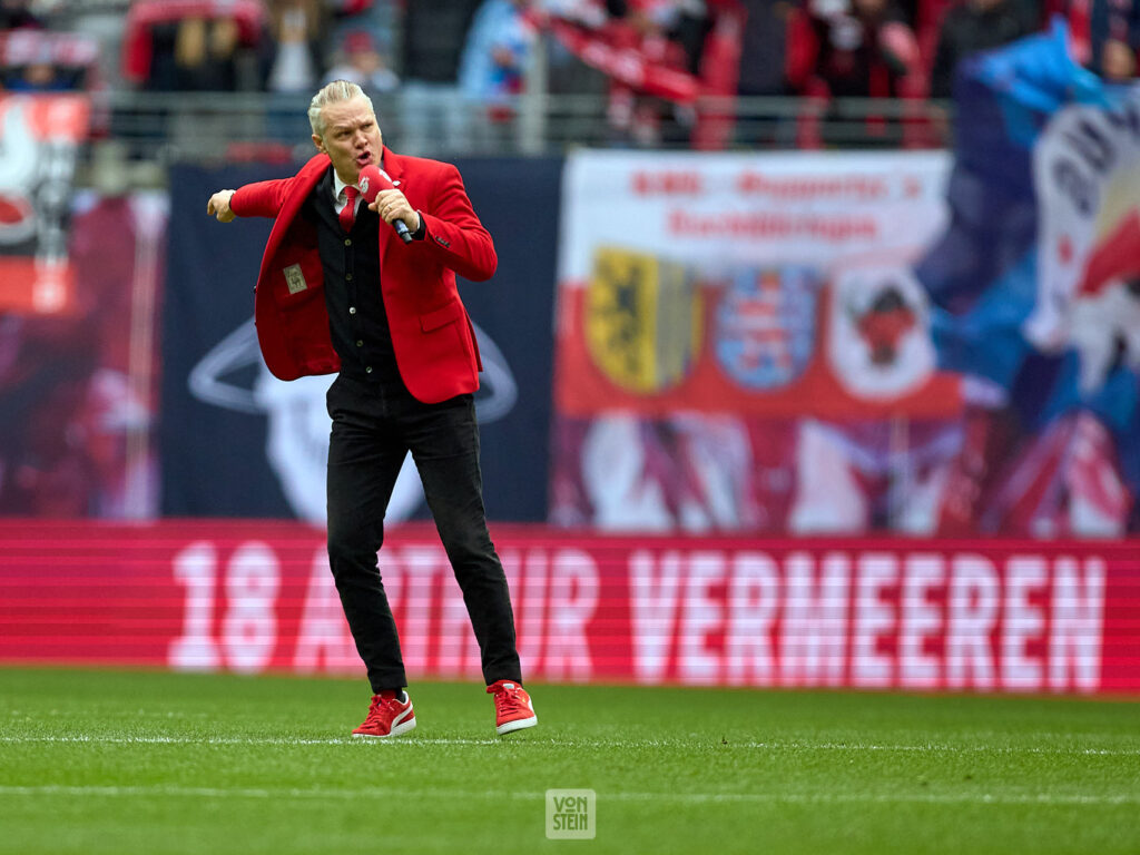 Tim Thoelke (Stadionsprecher, RB Leipzig), Freisteller, beim Zelebrieren der Mannschaftsaufstellung