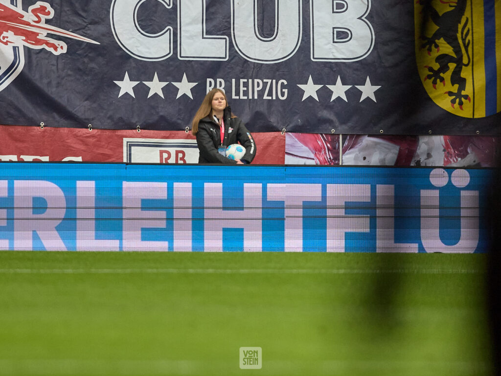 Ridle Baku (17, RB Leipzig), wird gefoult, mit Ball, Bullis Bande