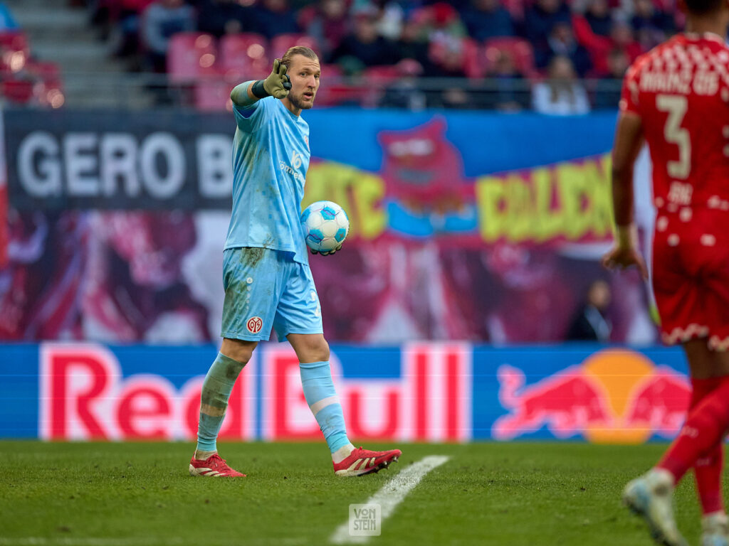 Robin Zentner (27, FSV Mainz 05), dirigiert seine Defensivspieler