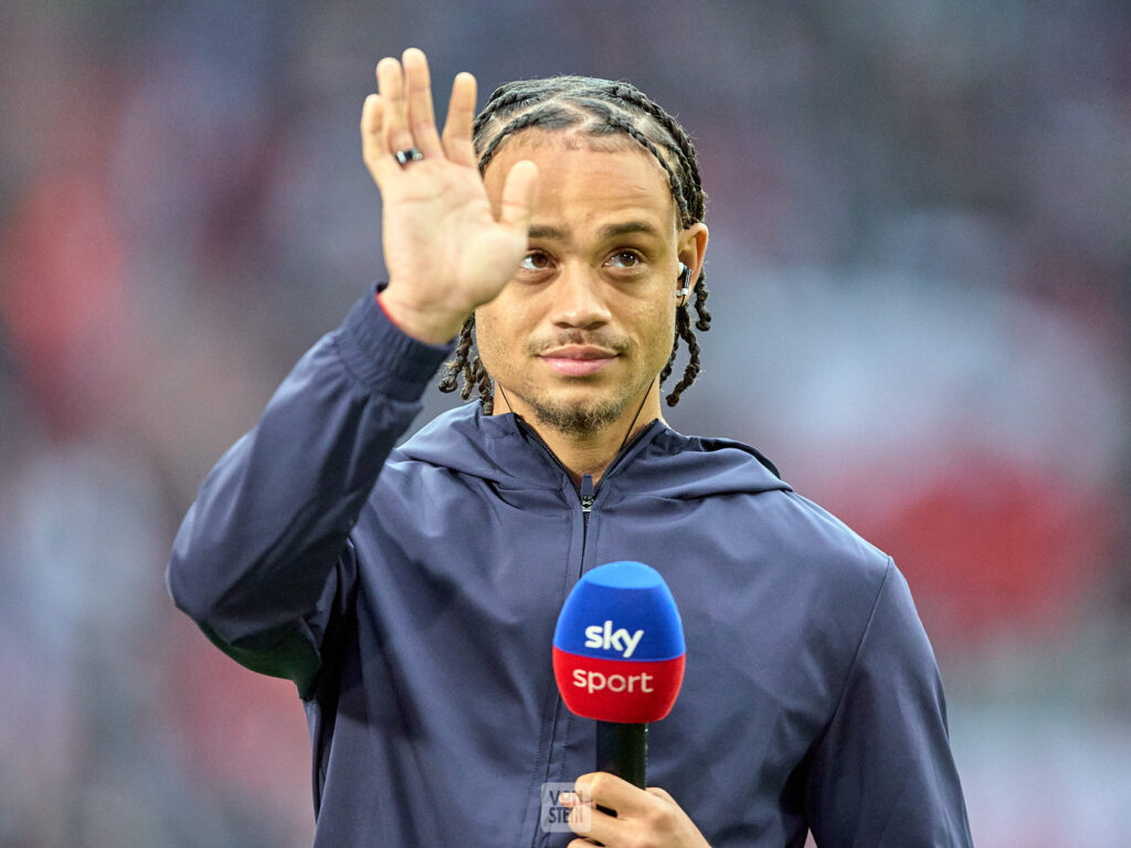Xavi Simons (10, RB Leipzig), Portrait, winkt, beim Interview, vorm Spiel