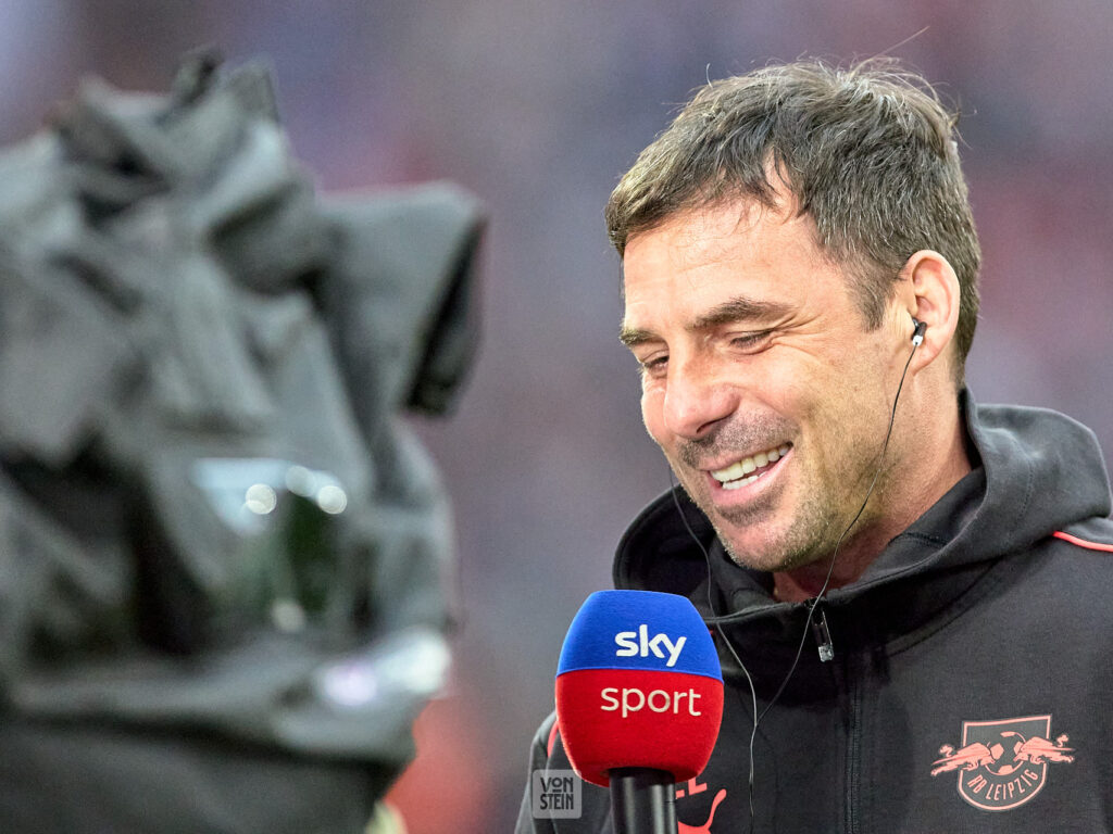 Zsolt Löw (Cheftrainer, RB Leipzig), beim Interview, vorm Spiel