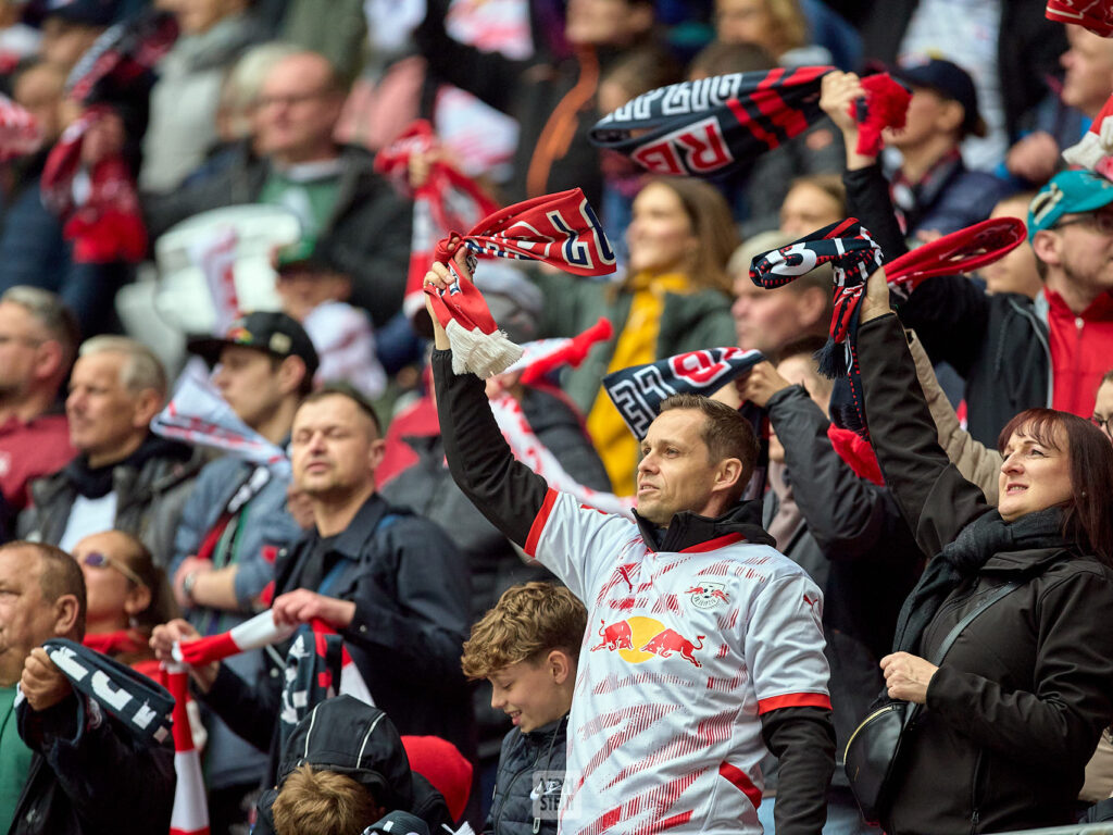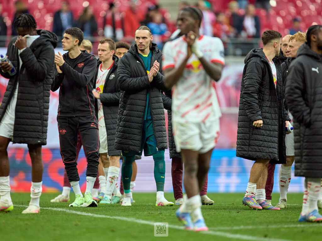 Maarten Vandevoordt (26, RB Leipzig), nach Abpfiff, vorm Fanblock