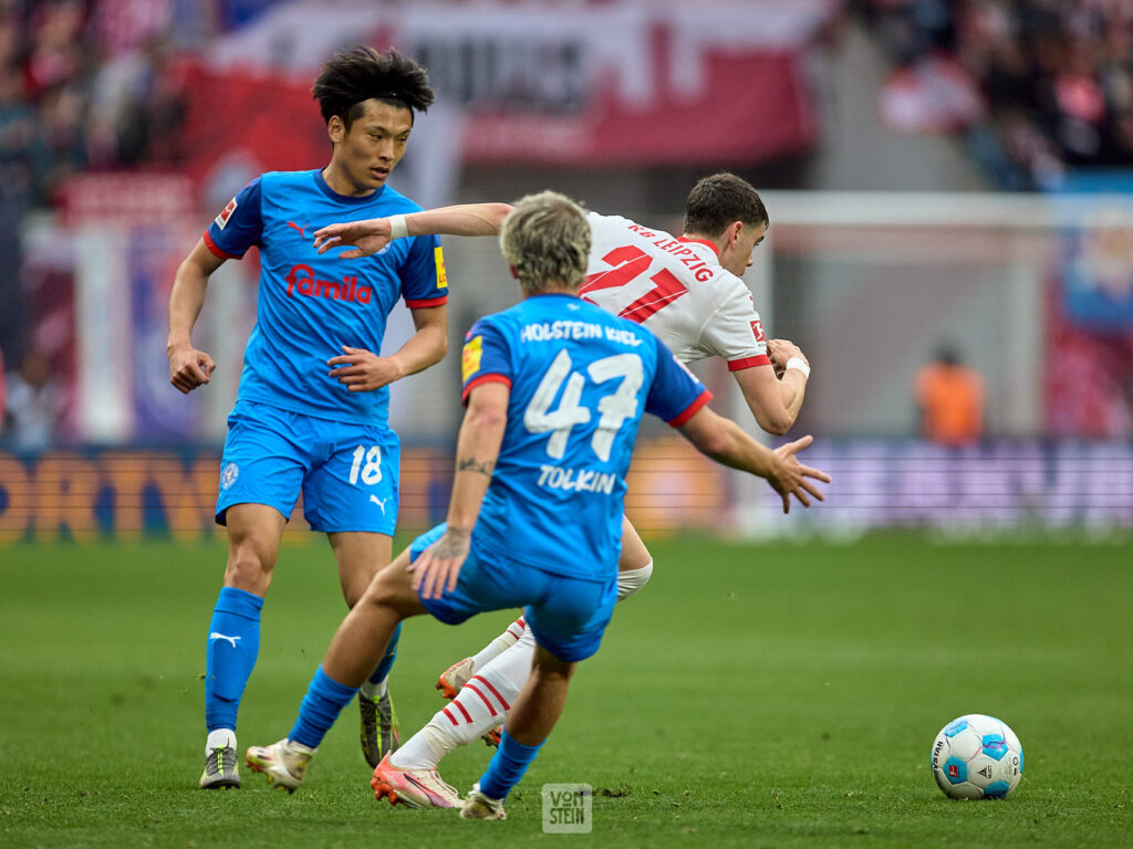 Max Geschwill (14, Holstein Kiel, li.), Lois Openda (11, RB Leipzig), Aktion, Zweikampf um Ball
