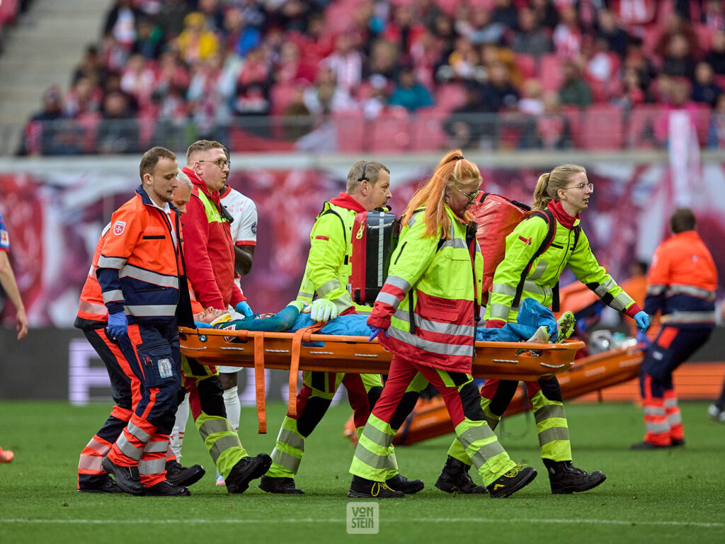 Peter Gulacsi (1, RB Leipzig), wird verletzt vom Platz getragen