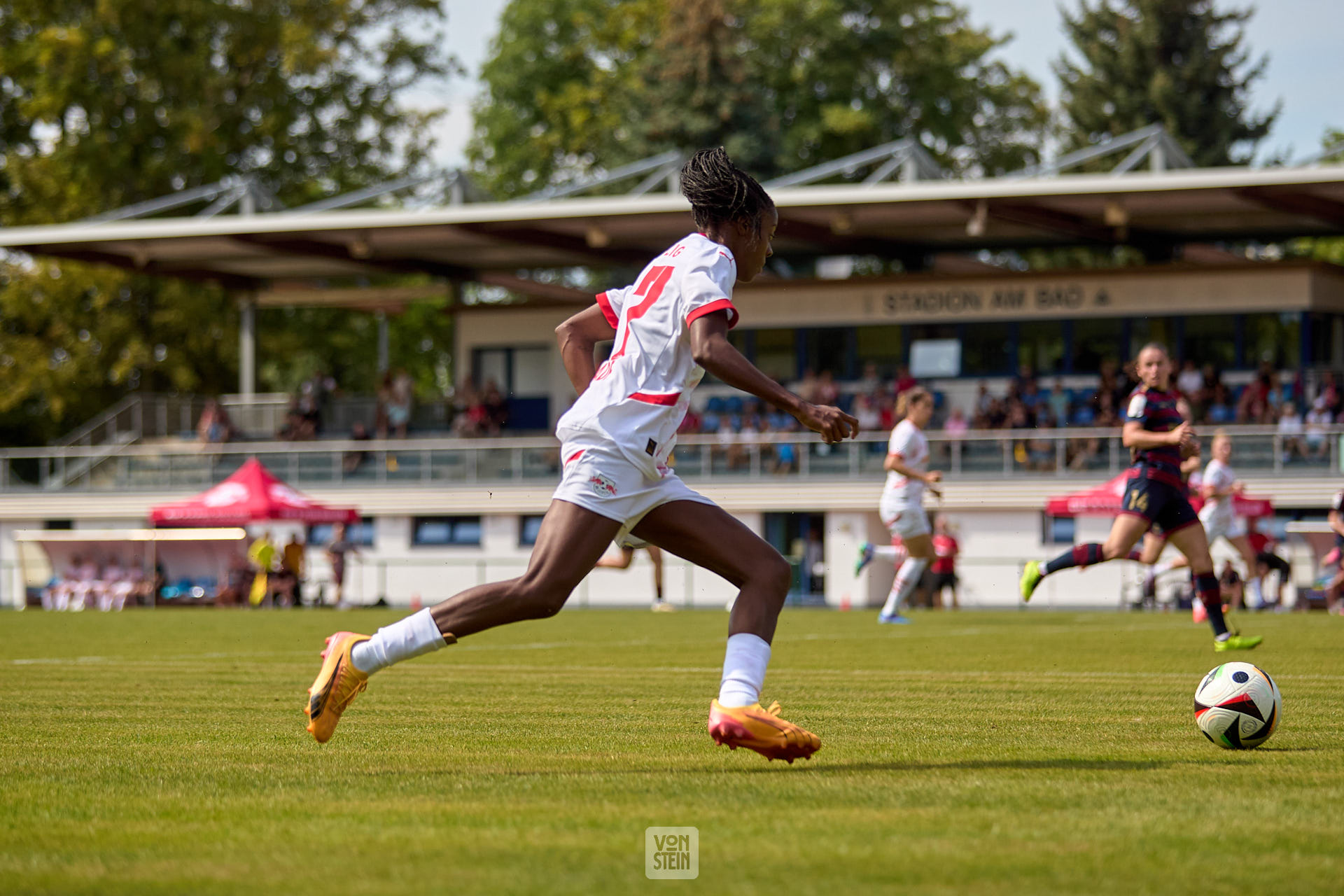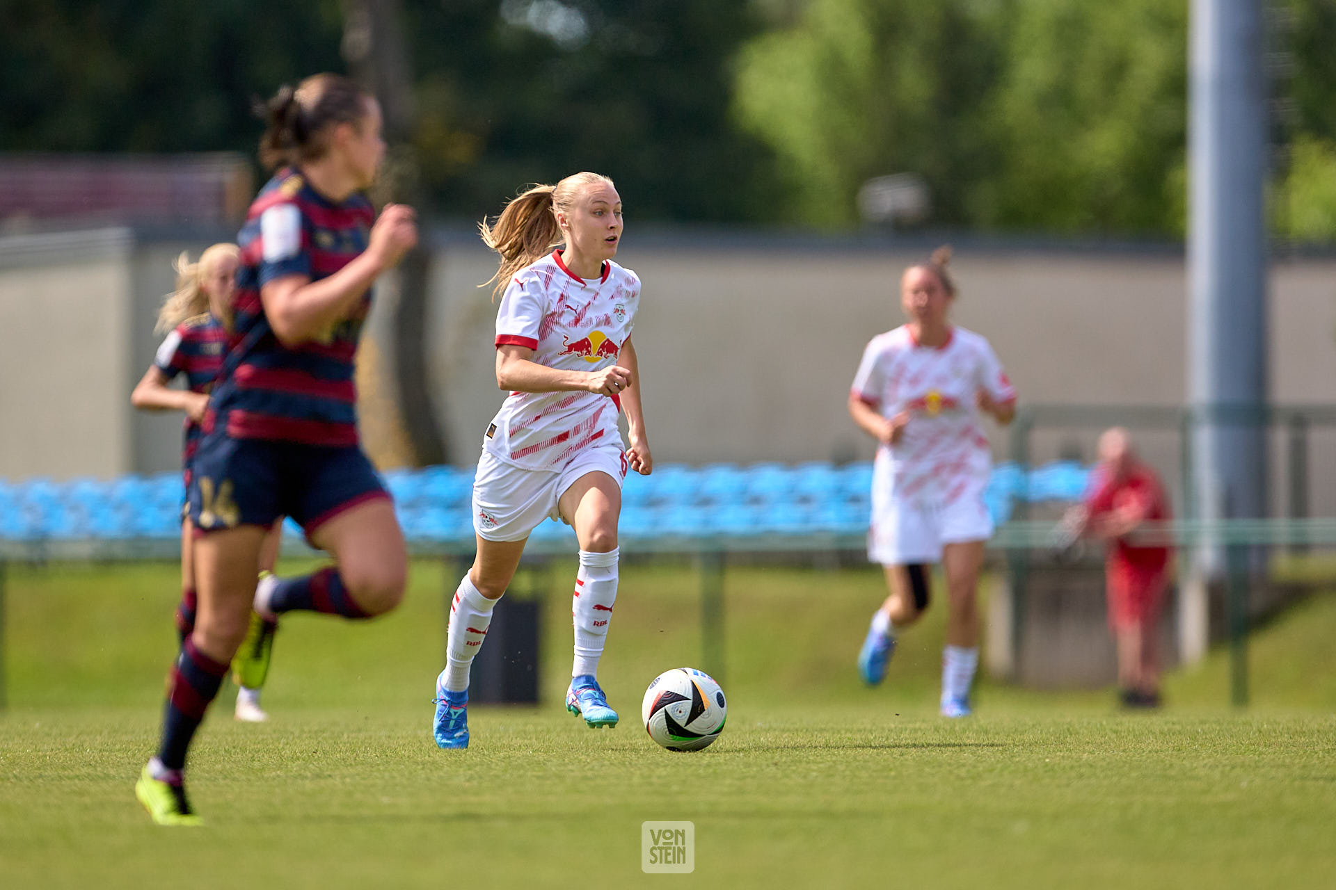 Lydia Andrade (17, RB Leipzig), Freisteller, Aktion, mit Ball, Tribüne im Hintergrund