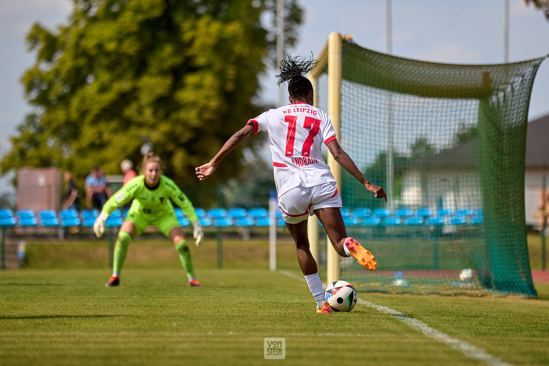 Lydia Andrade (17, RB Leipzig), Freisteller, Rückansicht, an Torauslinie, Pass in den Strafraum