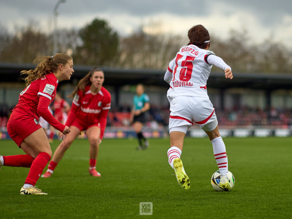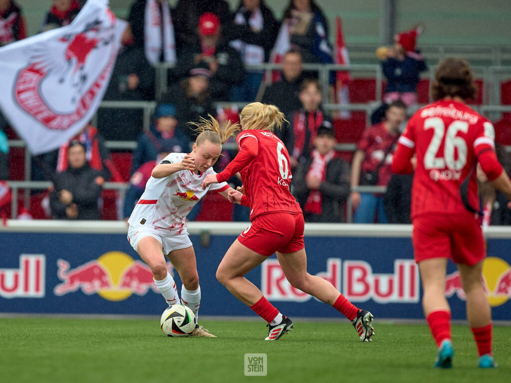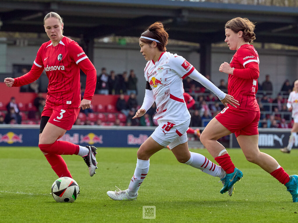 Alina Axtmann (3, SC Freiburg, li.), drängt Mai Kadowaki (15, RB Leipzig) ab, Aktion, Zweikampf um Ball