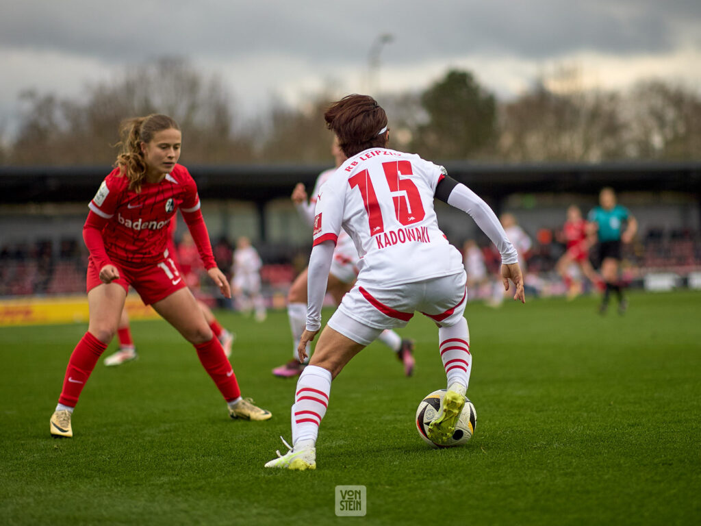 Mai Kadowaki (15, RB Leipzig, vorn), Julia Stierli (5, SC Freiburg), Aktion, Zweikampf um Ball