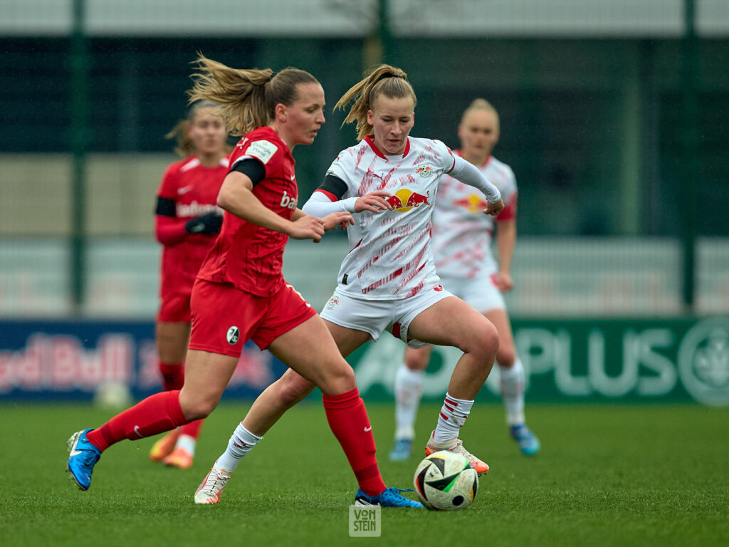 Lisa Kolb (18, SC Freiburg, li.), Marleen Schimmer (14, RB Leipzig), Aktion, Zweikampf umm Ball