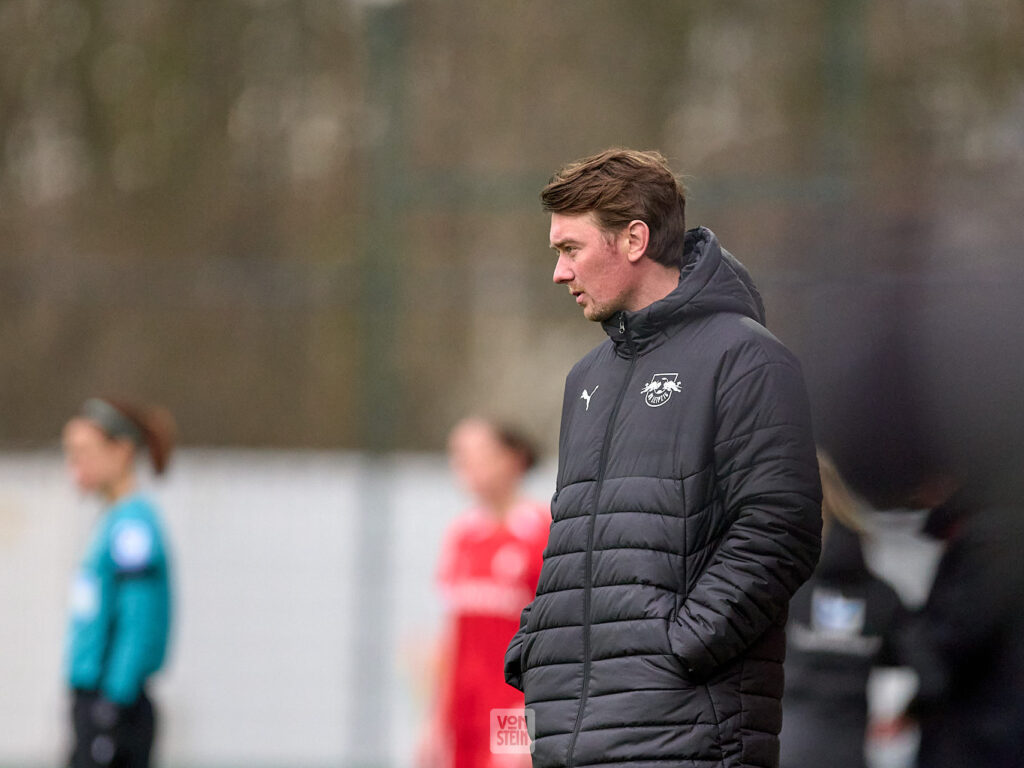 Jonas Stephan (Cheftrainer, RB Leipzig), Portrait, an der Seitenlinie, blickt aufs Feld