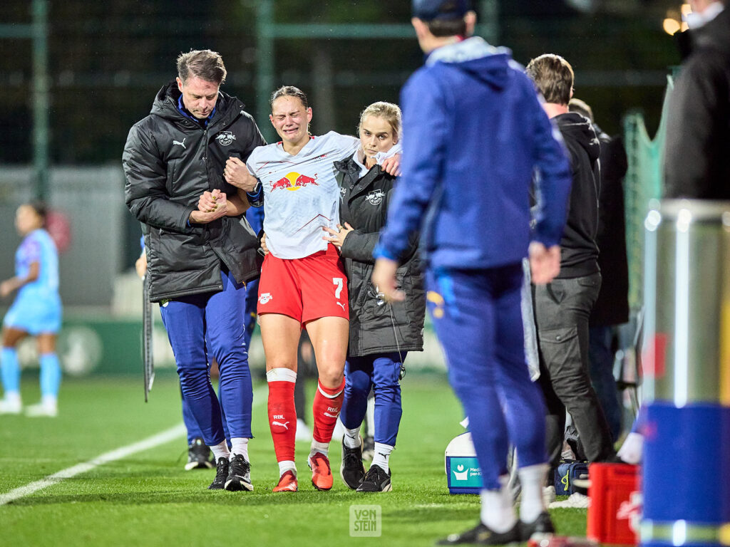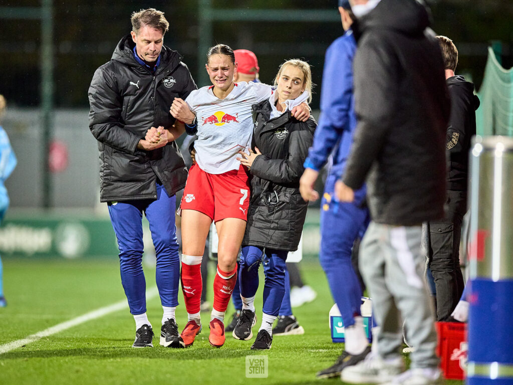Giovanna Hoffmann (7, RB Leipzig), wird verletzt ausgewechselt, gestützt