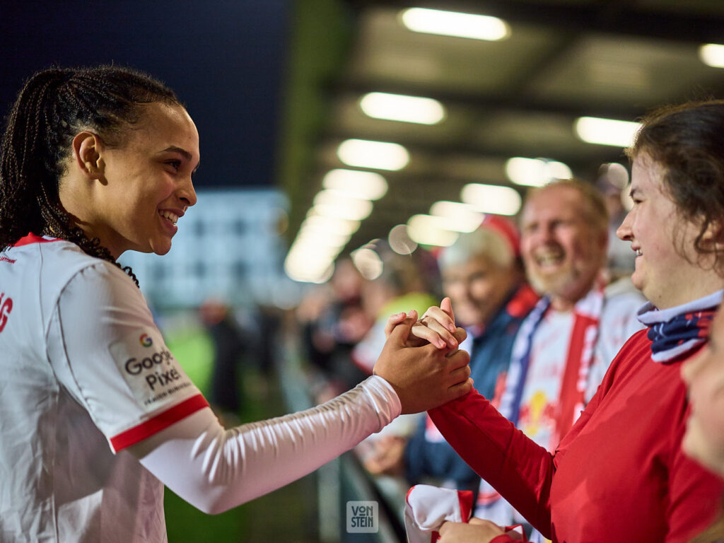 Lisa Baum (11, RB Leipzig), nach Abpfiff, mit Fans