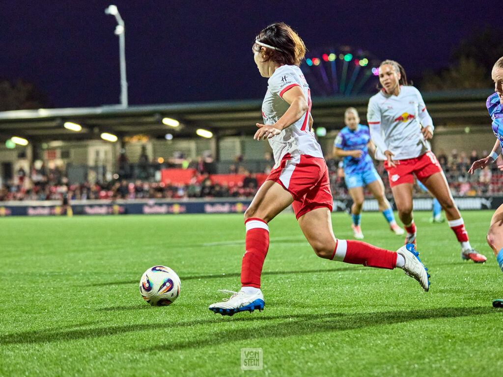 Mai Kadowaki (15, RB Leipzig), Freisteller, Aktion, mit Ball, dribbelt, Riesenrad im Hintergrund, Kleinmesse
