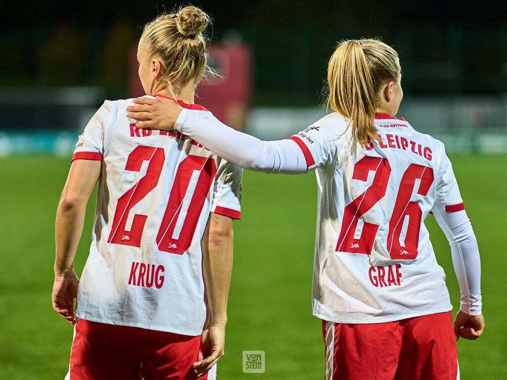 #Victoria Krug (20, RB Leipzig, li.), Luca Graf (26, RB Leipzig), Rückansicht, Jahr 2026 im Blick