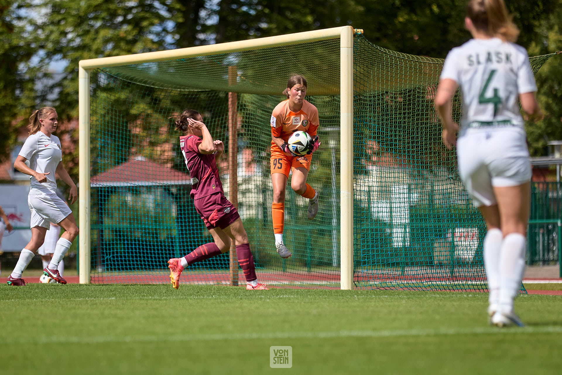 Hanna Supper (95, Slask Wroclaw), Freisteller, Aktion, hält Ball, im Sprung