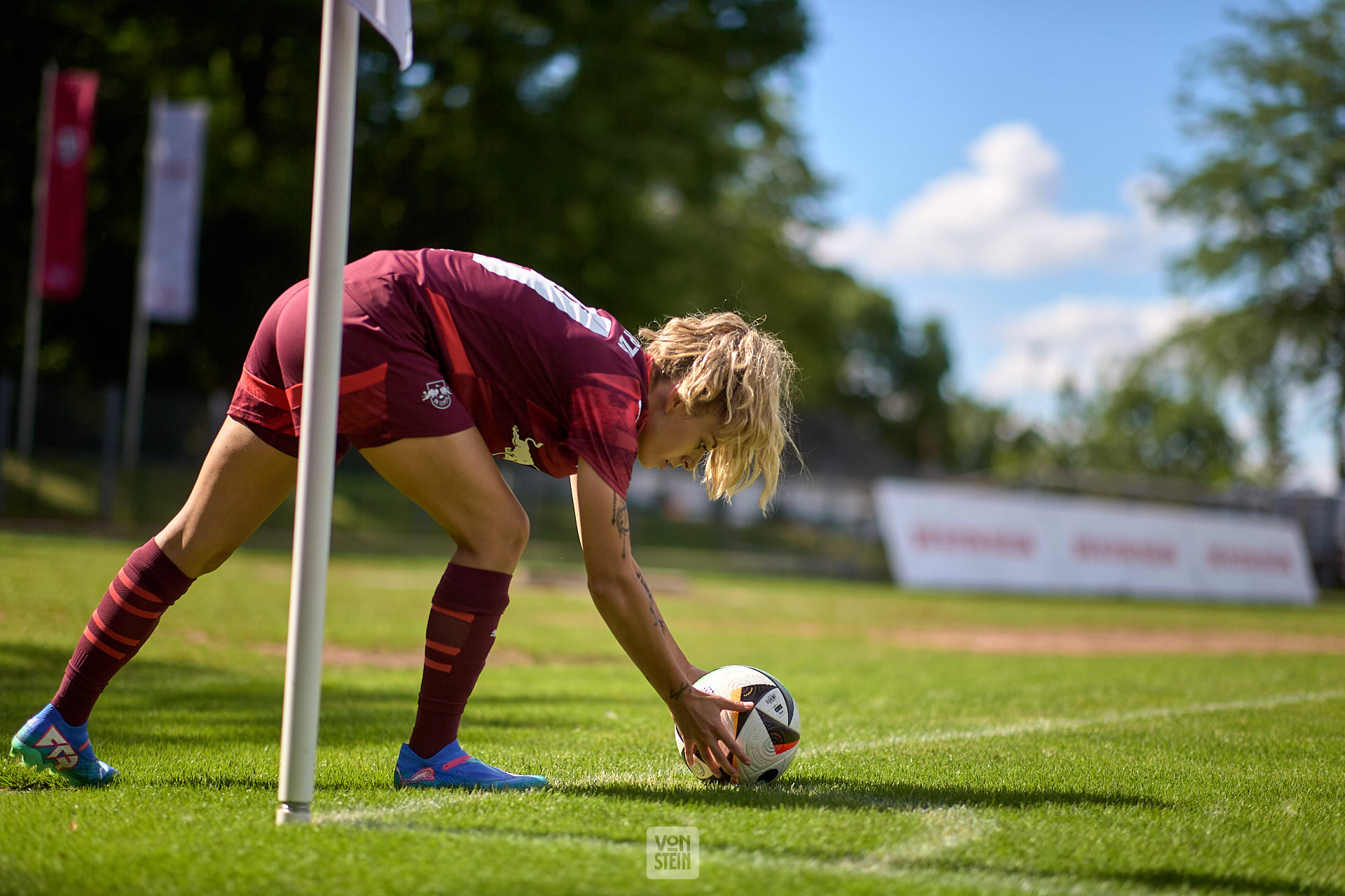 Jenny Hipp (19, RB Leipzig), legt sich den Ball für einen Eckstoß zurecht