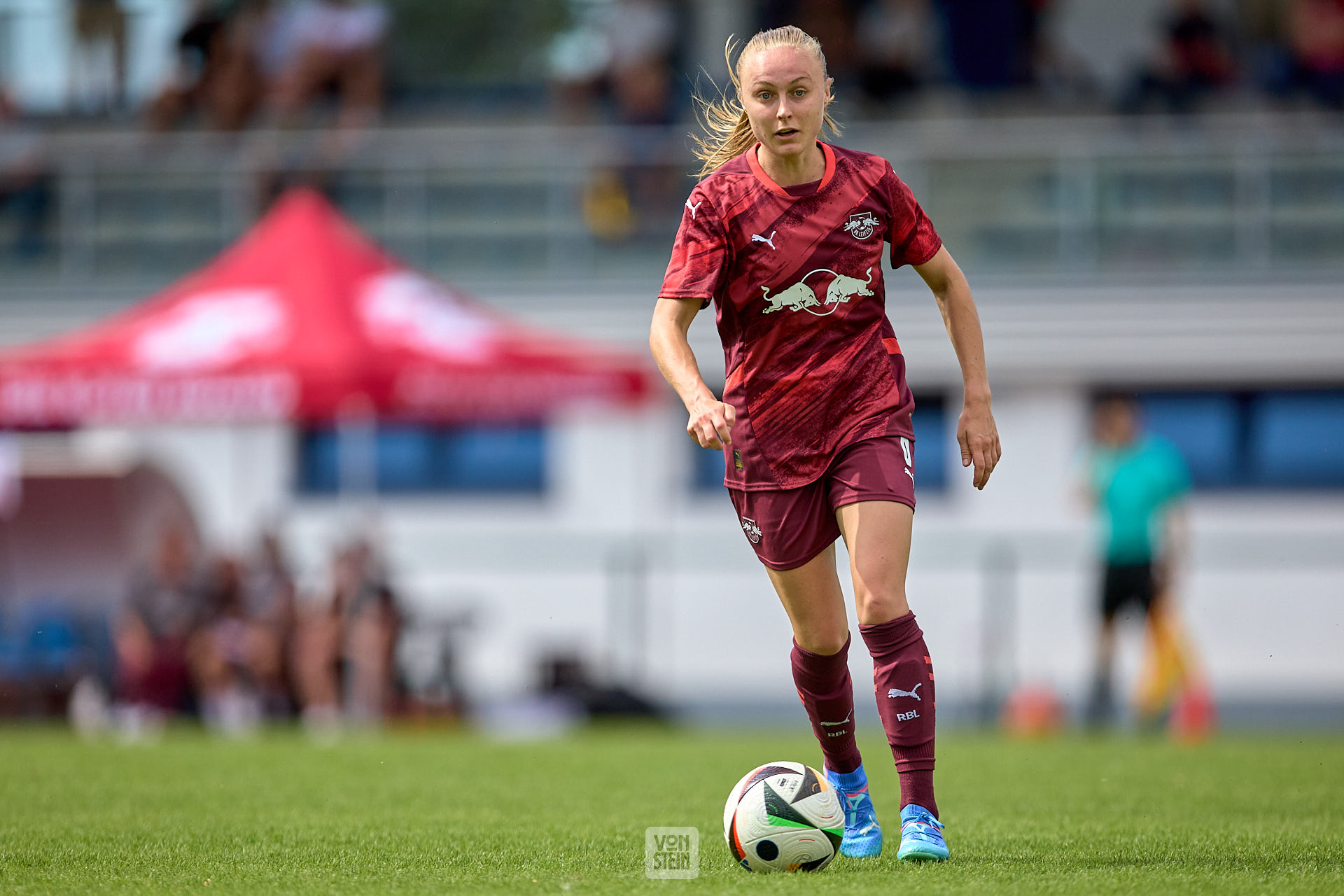 Mia Werner (32, RB Leipzig), Freisteller, Aktion, mit Ball, Blick zum Ball, voller Fokus